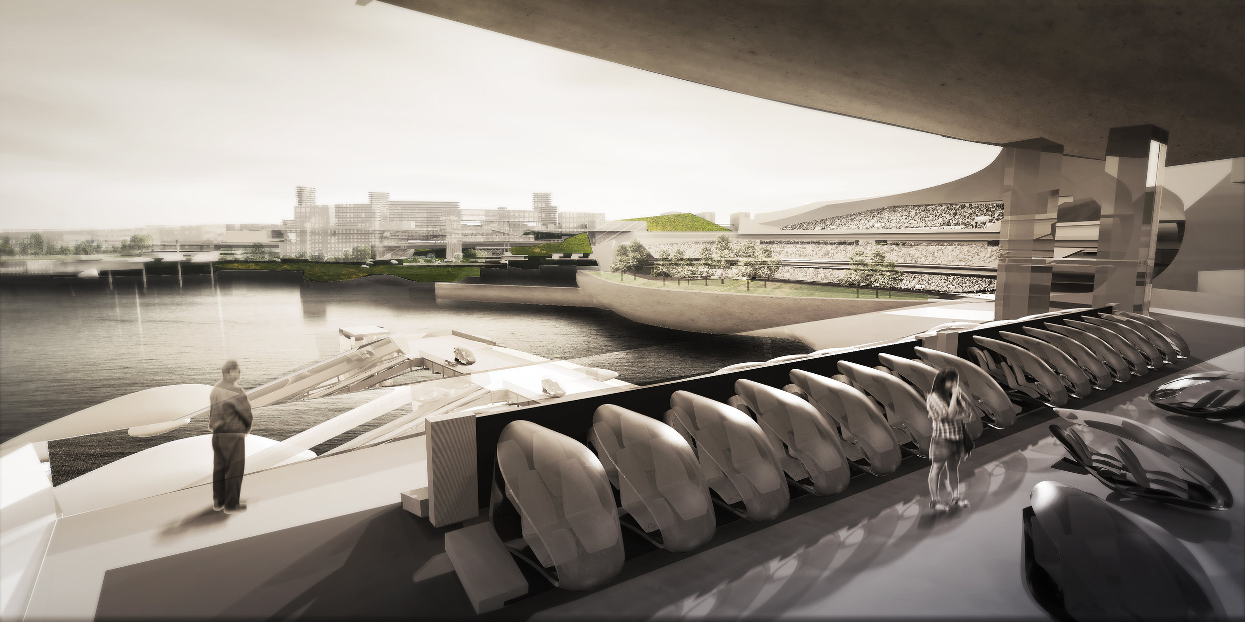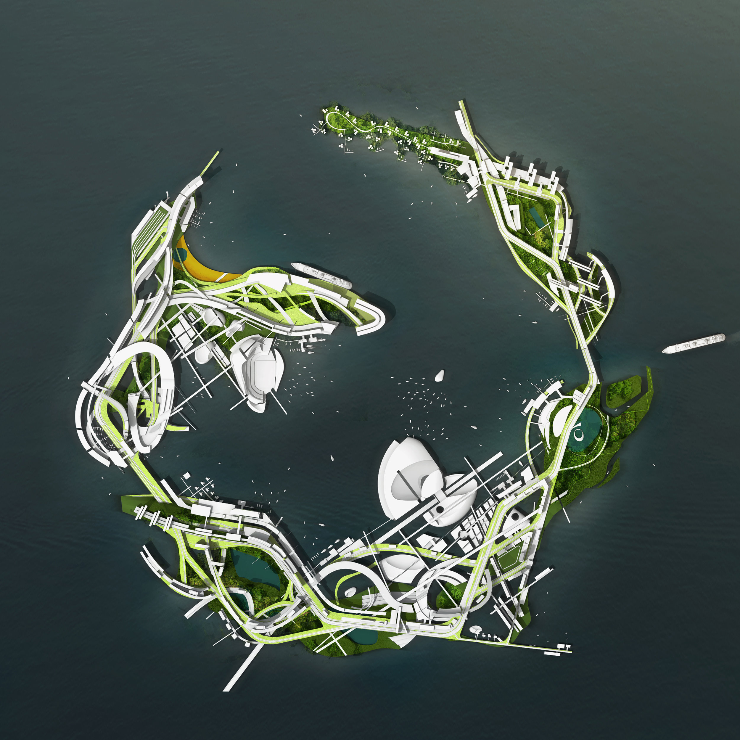 Studio targets the issue from five approaches, they are floating landscape, Archipelago, Infrastructure Urbanism, Extreme man-made urban environment, and the pods.